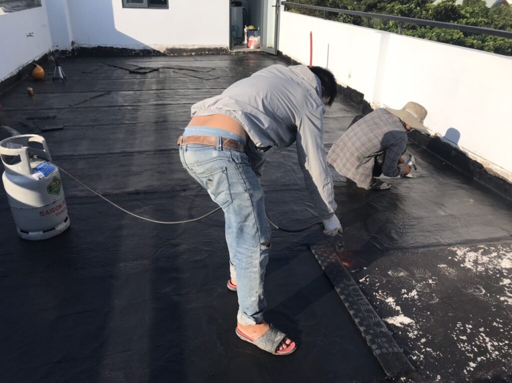 Dự án chống thấm sân thượng bằng màng khò bitum 3mm (màng trơn) Chống thấm sân thượng chi tiết dự án: Chủ nhà: A Thuận